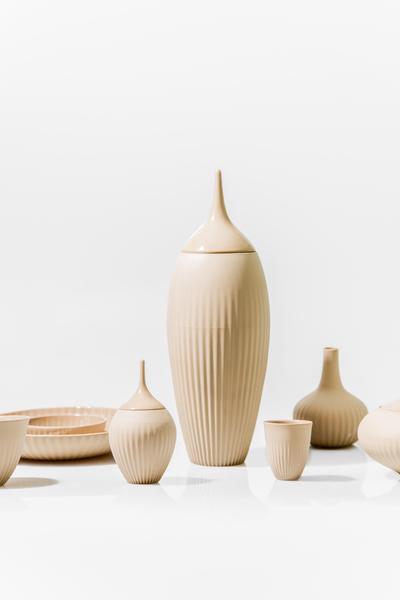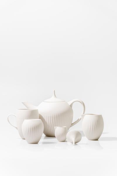 Die ALICE Tea & Dining Serie greift die prägnante Formensprache plissierter Lampenschirme der 1950er-Jahre auf. Aus dieser Inspiration entsteht ein gestalterisches Konzept, das sich bewusst zwischen zeitloser Eleganz und zeitgemäßer Tischkultur bewegt.